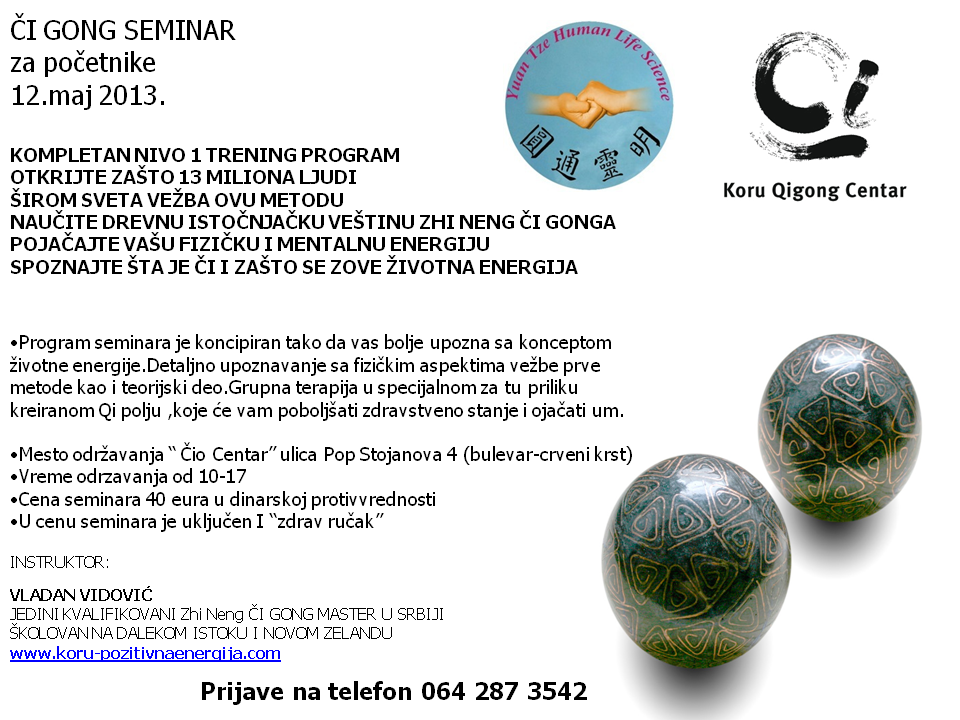 ČI GONG SEMINAR  za početnike  12.maj 2013.